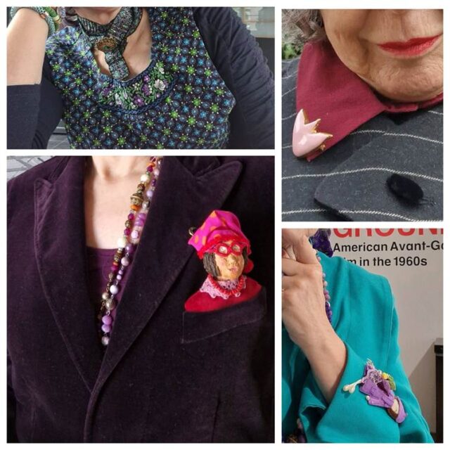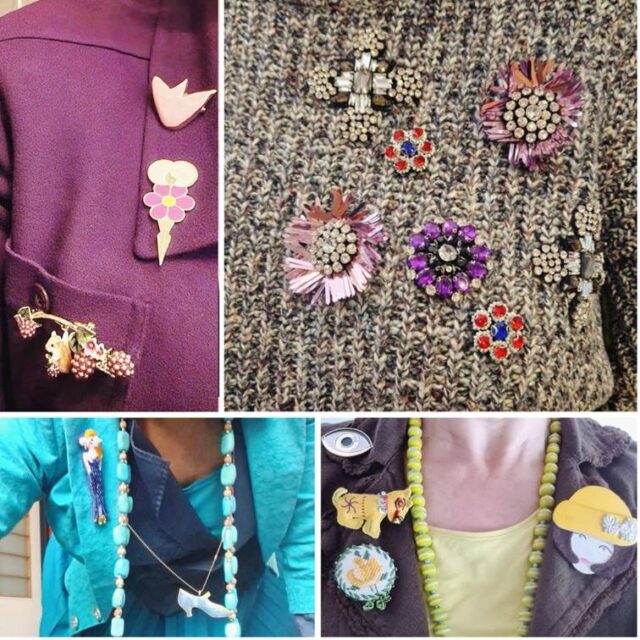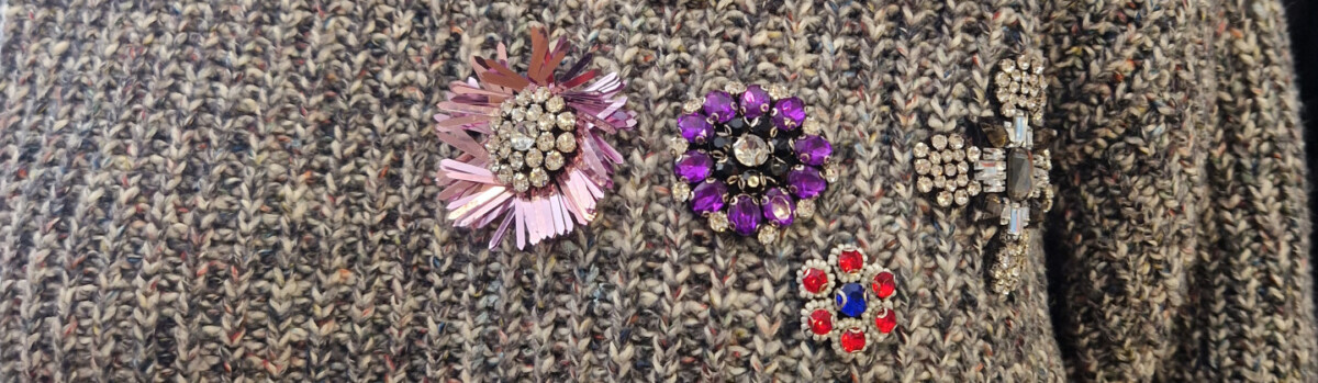 Je hoeft de broche niet te beperken tot rever. Een broche kun je op vele plaatsen spelden. Een manchet, een kraag, samen met kettingen, op je binnenkleding, maar zeker ook op je buitenjas.