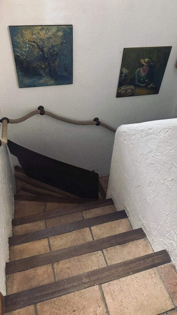Waar is de vloer???? Alsof de grond onder mijn voeten verdwenen is… ik zweef een fractie van een seconde en val. Ik rol (?)naar beneden, ik schreeuw. En eindig met een grote smak tegen mijn achterhoofd. “Ai”, denk ik, “mijn hoofd. Hersenschudding of erger?” Ik lig onderaan de trap. “Wat is er, wat is er gebeurd?!”, roept mijn gastvrouw Marijke. “Ik dacht het raampje van de wc te zien en wilde naar binnen. Maar ik was al bij de trap…” Ondertussen voel ik overal. Handen, armen, benen. Op mijn achterhoofd voel ik meteen een bult ter grootte van een pingpong bal, maar verder is er niets gebroken. Alleen die linkerzijkant, ai, ai, ai. Marijke ziet een kleine wond op mijn been, maar verder lijkt alles in orde. Zes, zeven treden op een stenen trap… Ik had wel dood kunnen zijn of in 1000 stukjes zitten huilen bij de Eerste Hulp aan de Côte d’Azur.