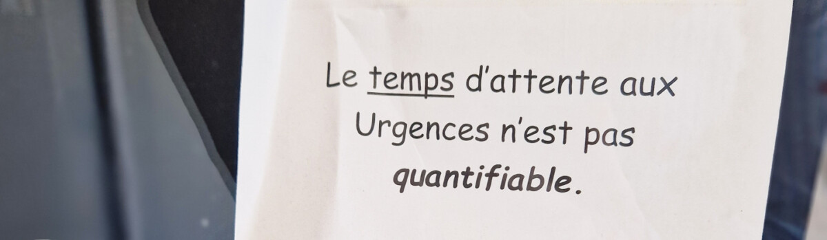 We belanden we op de Eerste Hulp Tête et Cou: hoofd en nek. Ik ben nog nooit op de Eerste hulp geweest, maar weet uit andere bronnen dat het altijd uuuuuren duurt. En ja, hoor bij de receptie hangt al bij voorbaat een briefje in de woorden van “de wachttijd valt niet te plannen of te kwantificeren, neem uw tijd.”