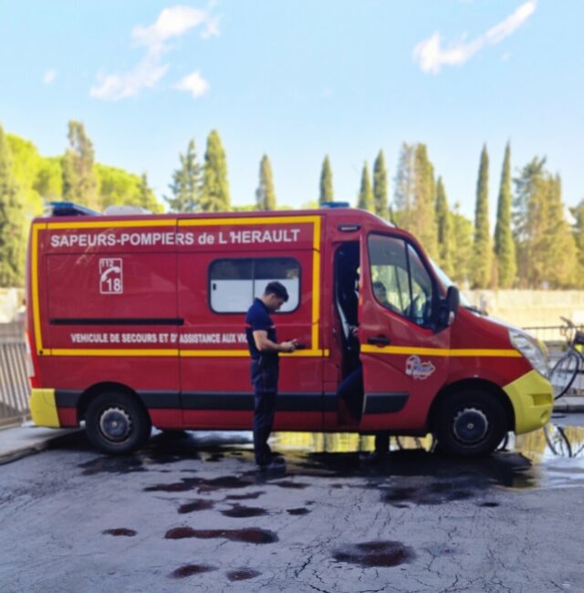 Intussen komen brancards af en aan. Hier zijn de sapeurs-pompiers aan het werk. Tussendoor zie ik een mevrouw de spreekkamer ingaan met een ooglapje; ze komt er weer uit zonder. Weer een kwartier later ligt ze gestrekt op een brancard.