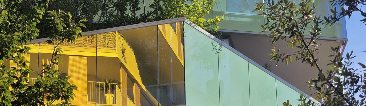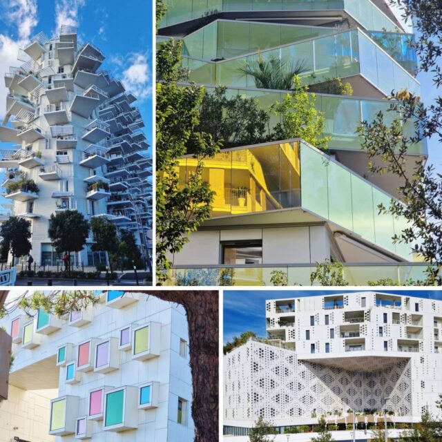 Buiten het centrum mogen ze wel naar hartenlust de hoogte in. Wat vaak resulteert in mooie, smaakvolle appartementsgebouwen. Het licht is hier natuurlijk anders dan thuis, dus een wit gebouw blinkt je hier echt tegemoet. Ik vermoed dat het wit hier ook langer standhoudt, omdat het een stuk minder regent dan bij ons.