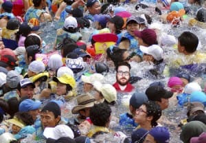 People swim to avoid the heat in a swimming pool in the Everland amusement park in Yongin, about 50 km (31 miles) south of Seoul, July 13, 2008. REUTERS/Everland Amusement Park/Handout (SOUTH KOREA). NO SALES. NO ARCHIVES. FOR EDITORIAL USE ONLY. NOT FOR SALE FOR MARKETING OR ADVERTISING CAMPAIGNS. SOUTH KOREA OUT. NO COMMERCIAL OR EDITORIAL SALES IN SOUTH KOREA.